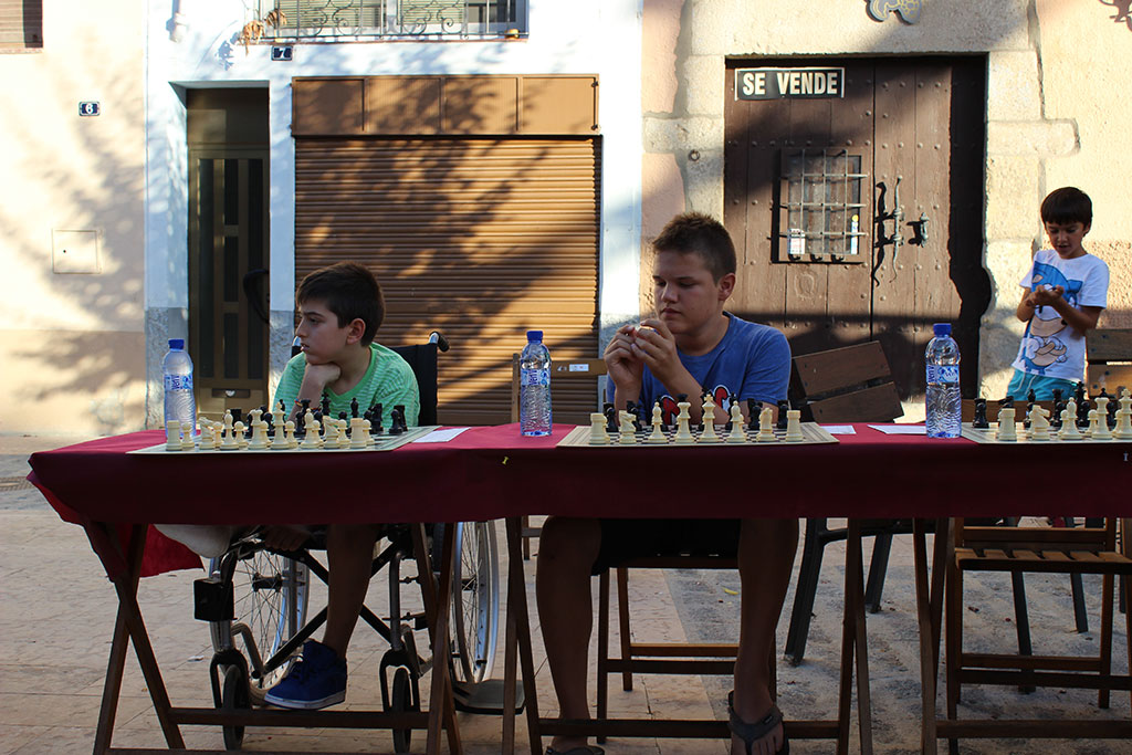Jordi Amigó i Albert Sanahuja van oferir un any més les tradicionals partides simultànies d’escacs dins els actes de la Festa Major del nostre poble.