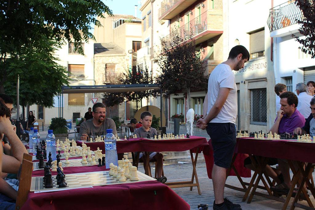 L’activitat va tenir lloc al Passeig Cañellas el dia 26 de juliol de 2013 a les 19:30 i van participar-hi una vintena d’aficionats als escacs, tant de l’Espluga com d’altres clubs propers.